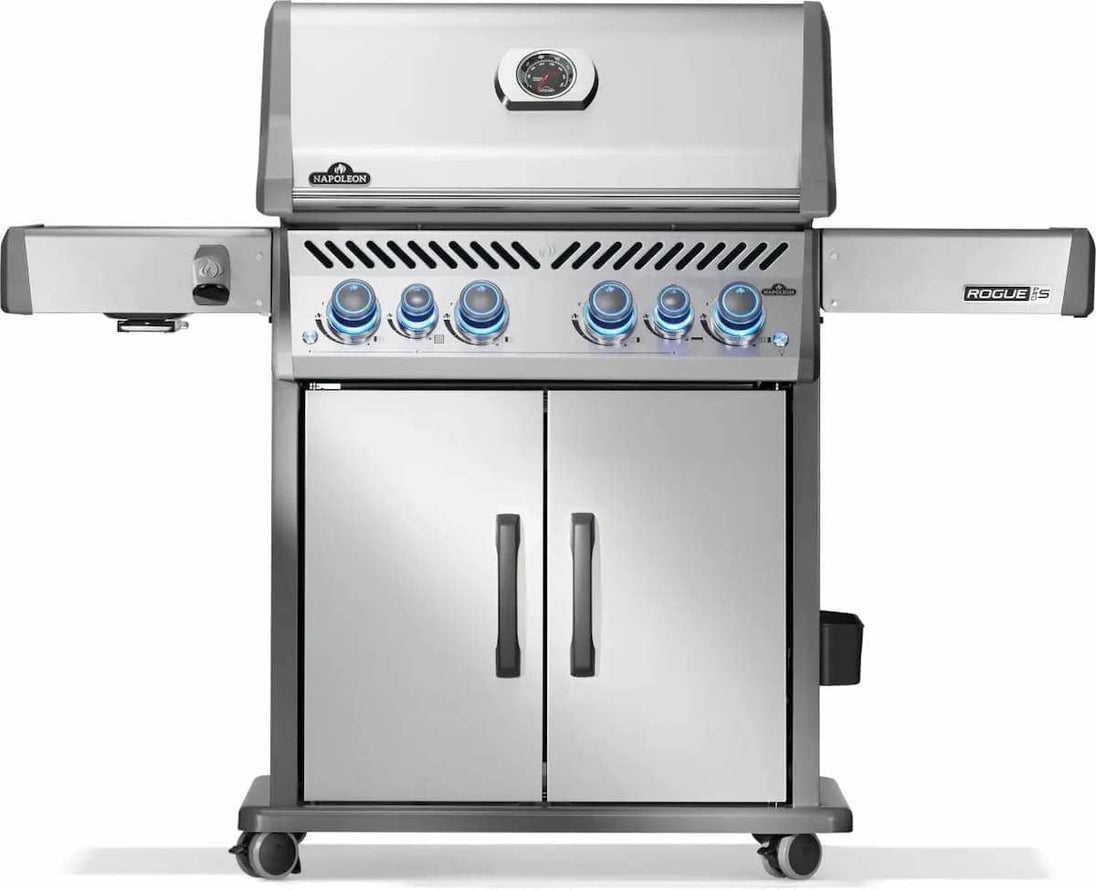 Unleash premium grilling performance with the Rogue® PRO-S 525 Stainless Steel Gas BBQ Grill. Designed for those who demand excellence, this propane gas grill delivers power, precision, and convenience. Experience restaurant-quality cooking with the infrared rotisserie burner, perfect for succulent roasts, and a large infrared sear station with a side