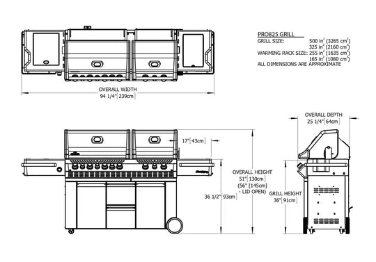 Napoleon Grills Prestige PRO 825 Gas BBQ Grill with Infrared Rear and Side Burners, PRO825RSBI-3