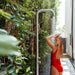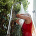 Freestanding outdoor shower with pressure balance valve, two-way diverter, and hand shower made of 316 marine grade brushed stainless steel.